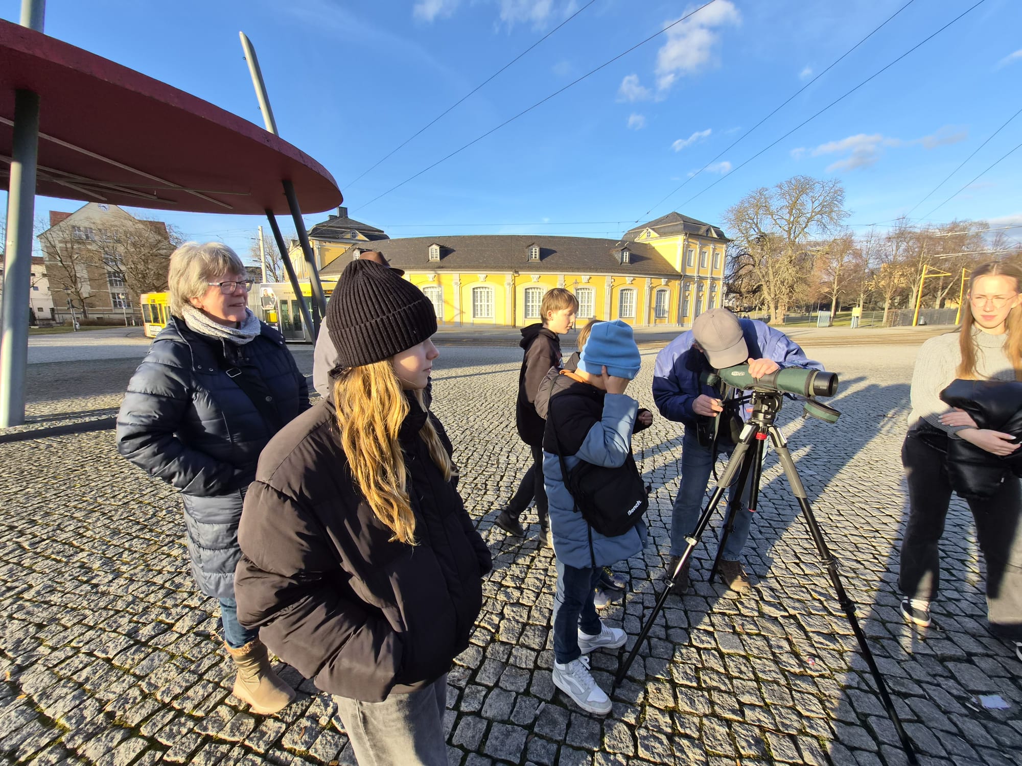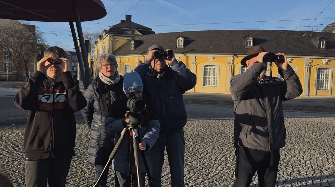 Ausgestattet mit Spektiv und vielen Ferngläsern der Kids, ging die Suche nach Nestern los. Nester von Freibrütern wie Tauben, Elstern und Krähen, hoch in den Bäumen, waren gut zu erkennen. Unglaublich, dass in diesen losen Nestern aus Zweigen Eier liegen und dann Jungvögel aufgezogen werden. Was für eine Leistung.