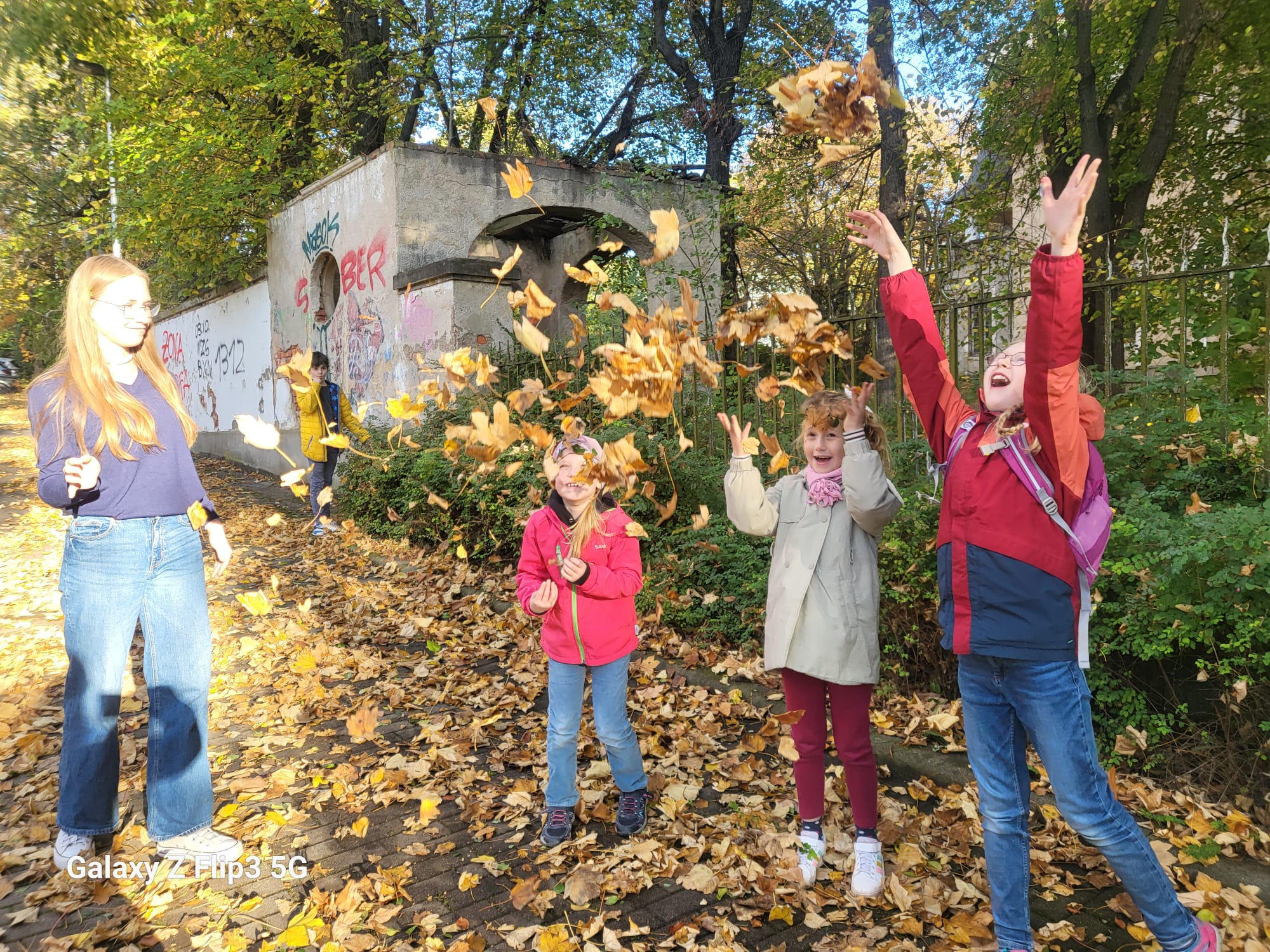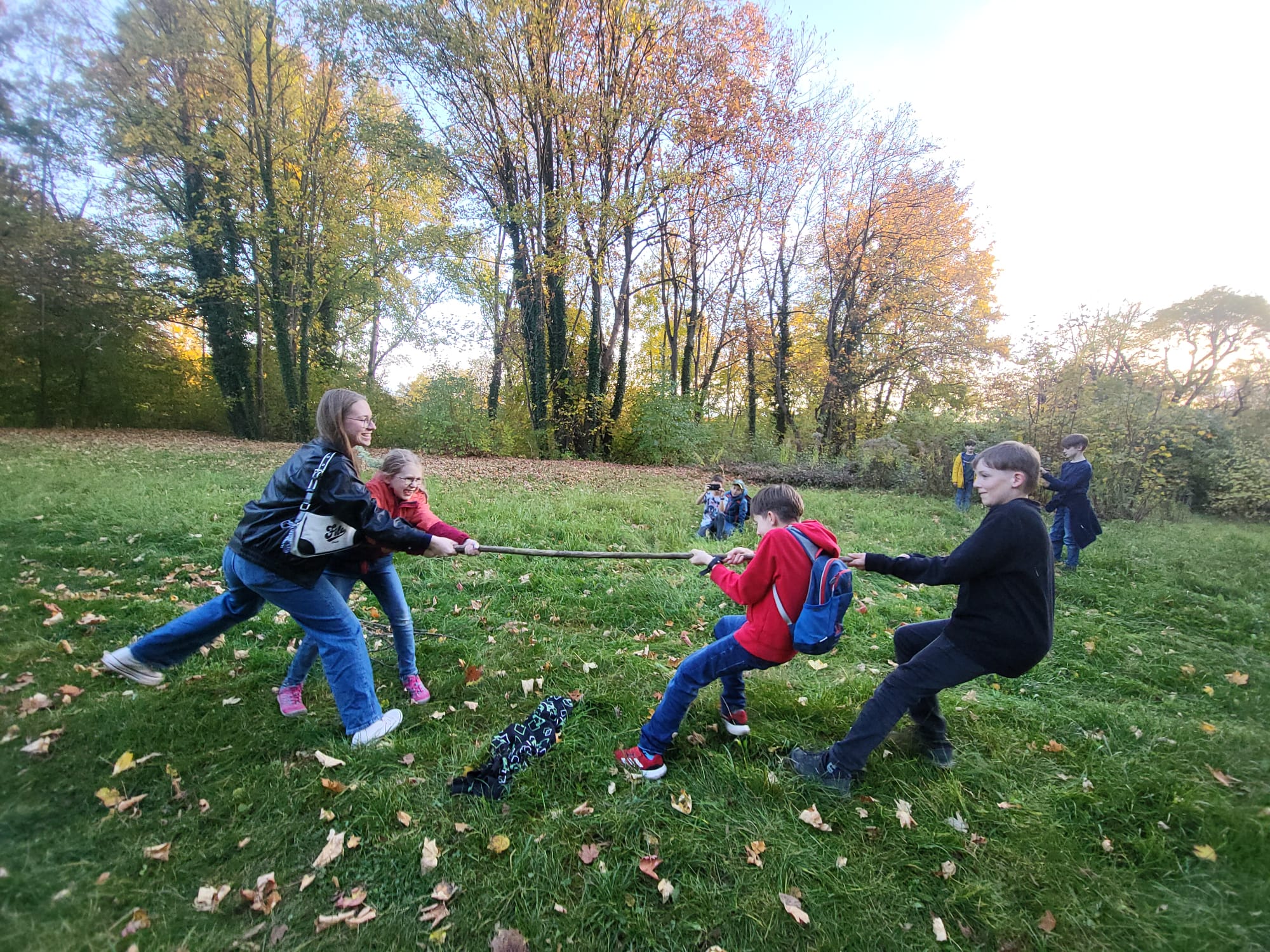 Erkundet haben wir den Bieblacher Park. Eigentliches Ziel war das Erkunden des Parkes mit Aufgaben. Aber Kinder entwickeln gern eine gute Eigendynamik. Das heißt: es wurde gespielt und sich inmitten der Natur gemeinsam vergnügt.
