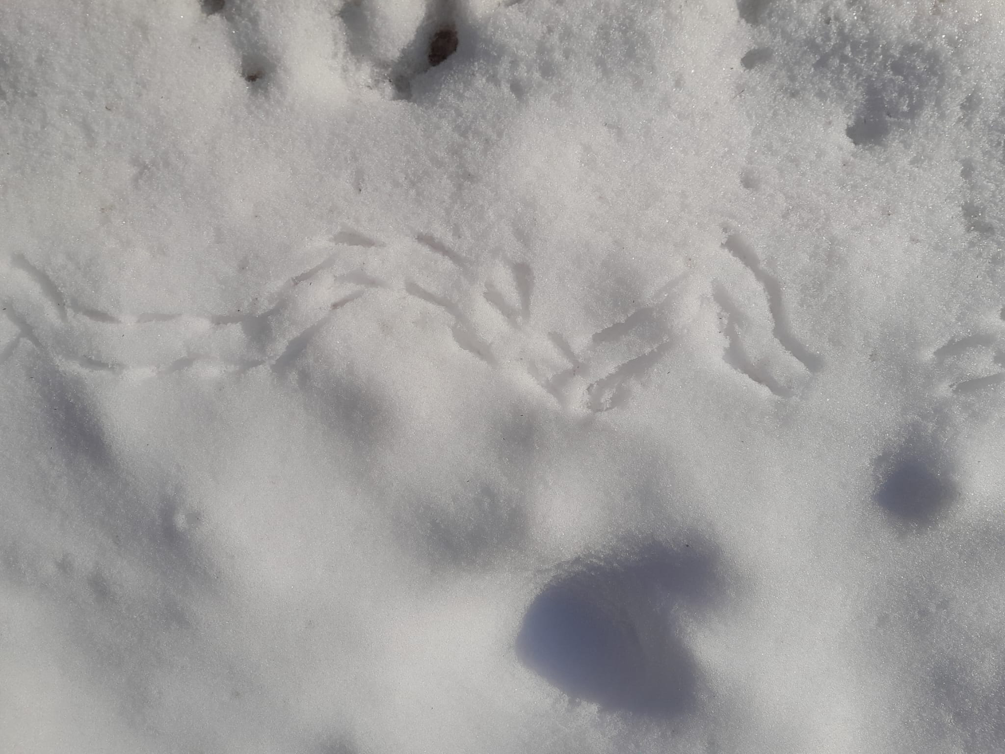 Unterwegs zwischen den zwei Stellen der aufgehängten Nistkästen konnten die Kinder verschiedene Tierspuren im Schnee beobachten. Beispielsweise Eichhörnchen und Amsel (siehe Bilder).