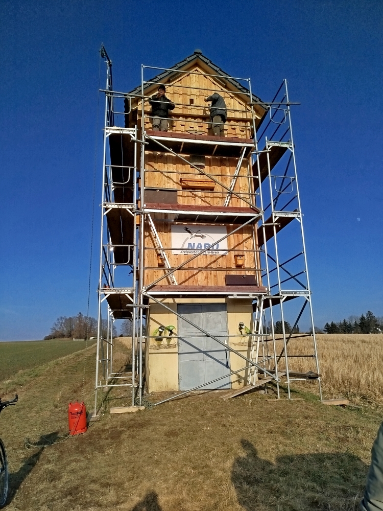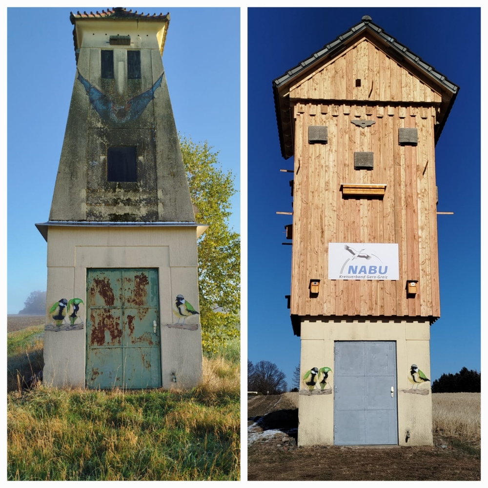 Der Ortsgruppe Greiz des NABU Kreisverbandes Gera-Greiz ist es gelungen, Anfang des Jahres 2023, die Artenschutztürme Reudnitz und Greiz-Reinsdorf aus ihrem mehrjährigem „Dornröschenschlaf“ zu holen. Dieser war durch die Auflösung des Vereins Ostthüringer Ornithologen e.V. in 2016 entstanden. Nachdem wir die Eigentumsverhältnisse recherchiert hatten, zeigten sich die Eigentümer – kommunal (Stadt Greiz in Reinsdorf) und privat (in Reudnitz) sehr kooperativ, die Nutzung weiterhin in die Hände Dritter zu geben. Nach Abschluss der Mietverträge, Auswechseln der Schlösser sowie Sicherung der Begehbarkeit konnte die Betreuung der Türme neu gestartet werden.