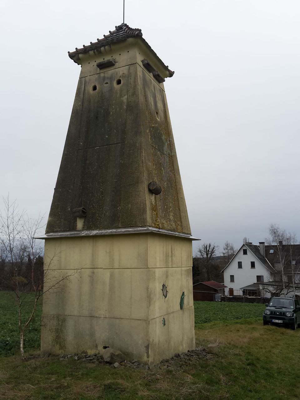 Für Herbst 2023 und das Frühjahr 2024 hatten wir uns vorgenommen, aktiv die Ursachen dafür zu ergründen. Durch die nach unten breiter werdender Form des Turmkörpers und das dazu verhältnismäßig zu kleine Dach stand die Fassade jahrelang schutzlos im Wetter. Auch das Grafiti-Kunstwerk der Brüder Rank wurde so zerstört. Die Lösung des Problems konnte nur durch zwei umfangreiche Baumaßnahmen erfolgen: Dachvergrößerung und Holzverkleidung mit Umgestaltung von der konischen in eine zylindrische Form.