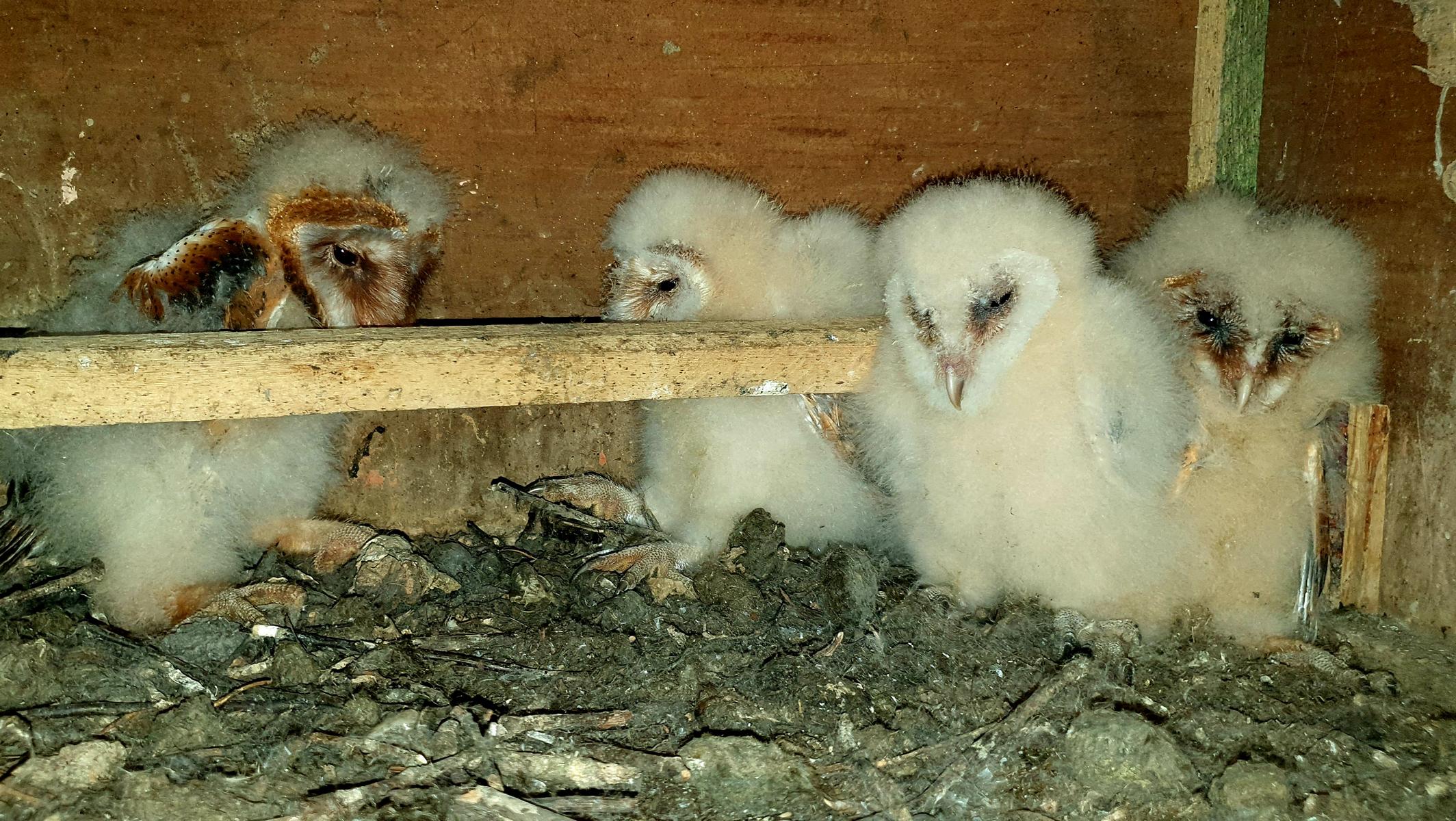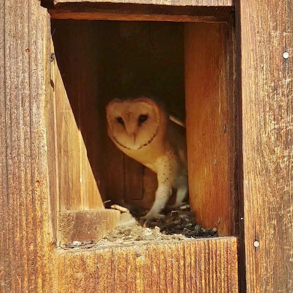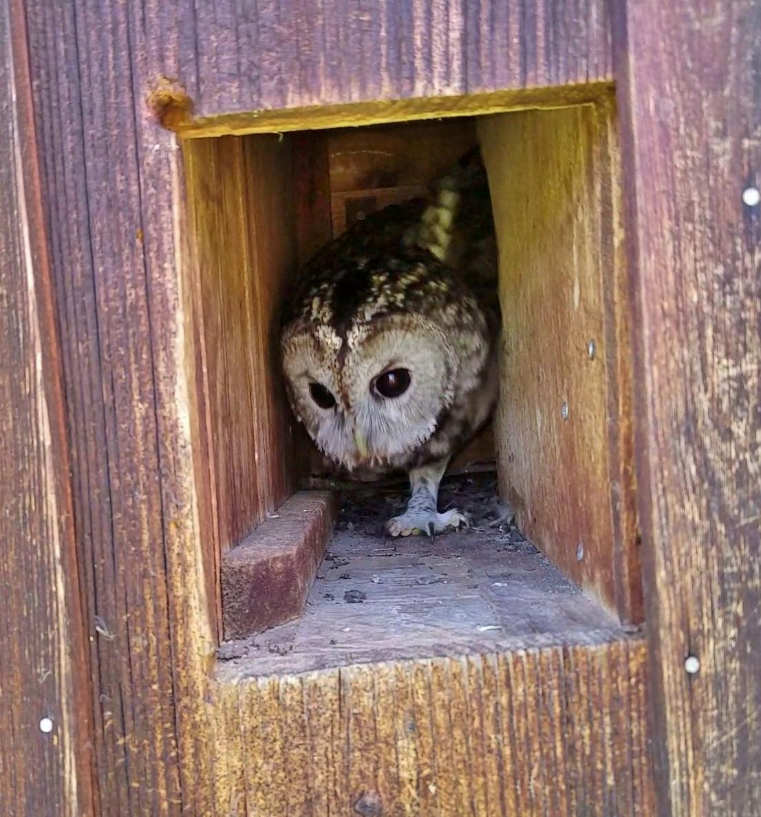 Waldkauz und Schleiereule benutzen den selben Brutplatz im Wechsel (Schleiereulenkiste)