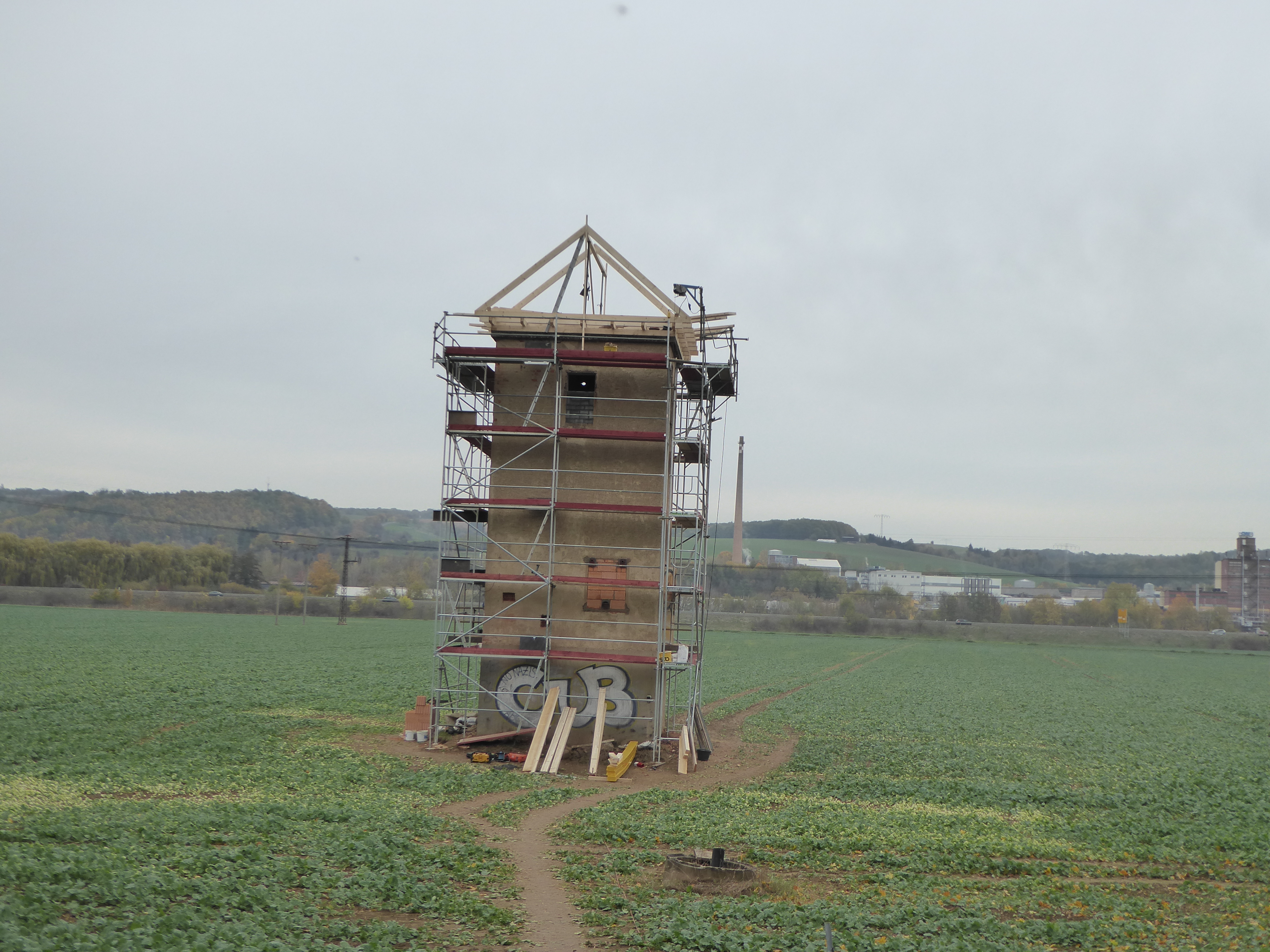 Der Turm während des Umbaus. [01.11.2018] © Foto: Kerstin und Konrad Schmeißer/NABU Gera-Greiz e.V.