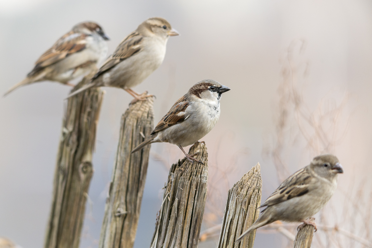 Haussperlinge (Passer domesticus) brüteten in den Mauerseglerkästen.